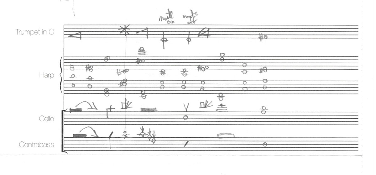 live performance for cello, harp, trumpet, double bass, dancers, prepared strings
