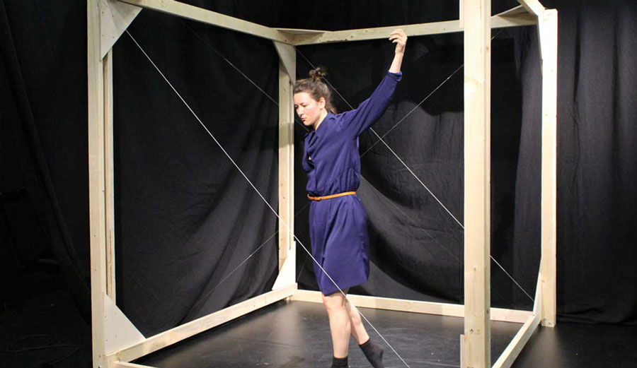 The dancer inhabits the acoustic and tangible instrument, generating sounds that are captured in real-time and processed using granular synthesis to become a digital soundscape, a fragmented memory of the acoustic installation. This digital soundscape is also activated by the dancer through the use of motion-capture technology, allowing their movements to generate sound textures. These representations become acoustic and digital self-portraits of the dancer and create an ambivalent duet between acoustic tangible space and fragmented digital memory.