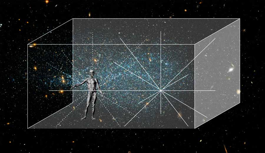 Exploring the tension between digital and tangible representations of self, the movements of a performer produce sound through interaction with a digital soundscape and large-scale acoustic spatial instrument.